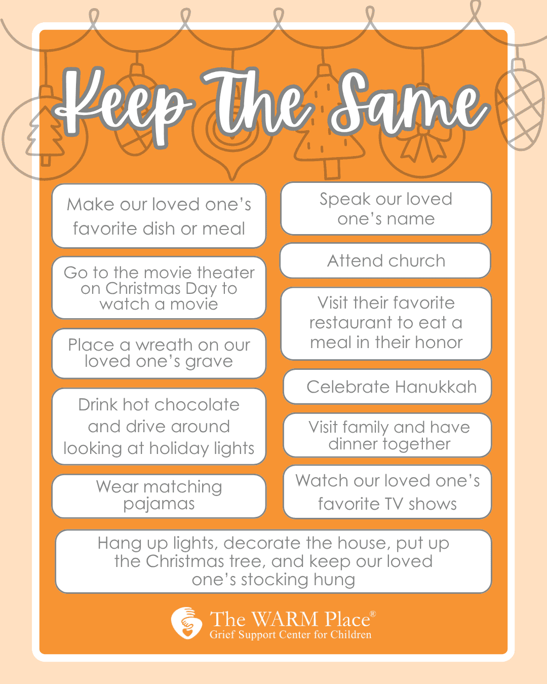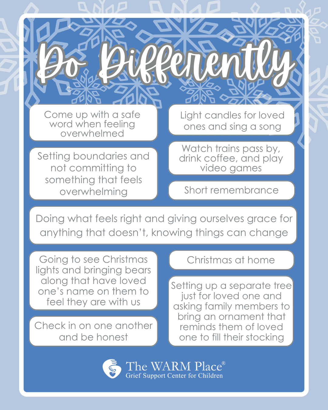 If this season feels different for you, know that you’re not alone. Grief is a part of our story of remembrance and love. May we hold space for both sorrow and celebration, and for one another, as we navigate what it means to keep traditions alive, while honoring the ones we miss.